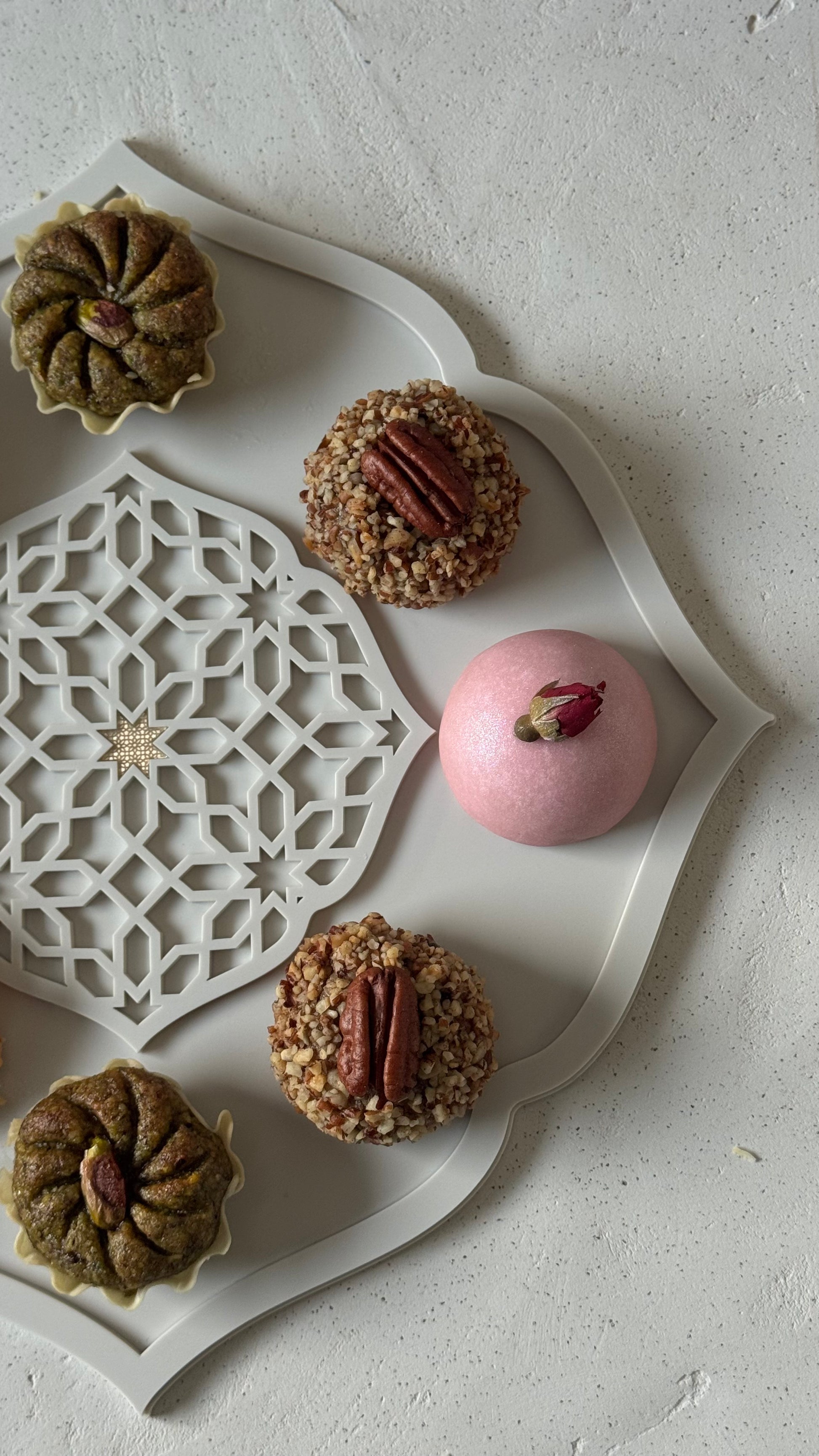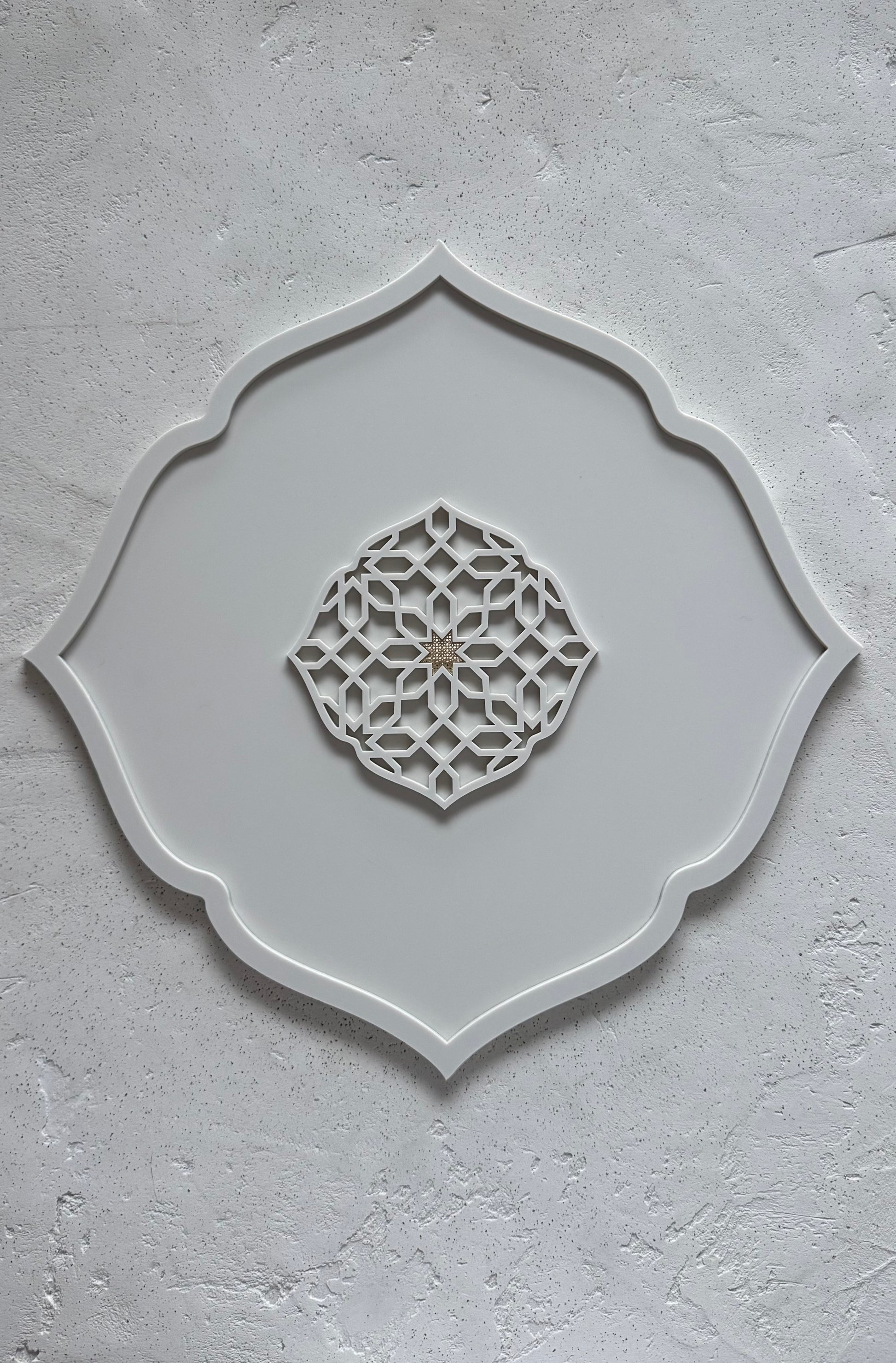 Petit plateau orient Plateau de présentation aux lignes épurées, inspiré par l'architecture orientale. Sa forme arabesque délicate encadre un centre moucharabieh travaillé, créant une composition visuelle raffinée. Parfait pour servir vos mini pâtisseries orientales ou disposer des verres à thé avec élégance. Un accessoire de décoration fonctionnel qui apporte une touche de sophistication intemporelle à votre table ou votre intérieur.